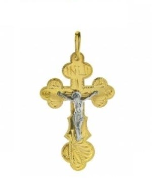 Это освященное православное изделие - Крест из золота 585 пробы. Имеет алмазную и лазерную огранку. Если хотите конкретную обработку, то уточните возможность ее выбора у менеджера при заказе. Весит, от 2,18 гр.