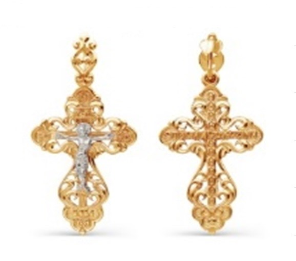 Это освященное православное изделие - Крест из золота 585 пробы. Имеет алмазную и лазерную огранку. Если хотите конкретную обработку, то уточните возможность ее выбора у менеджера при заказе. Весит, от 2,54 гр.