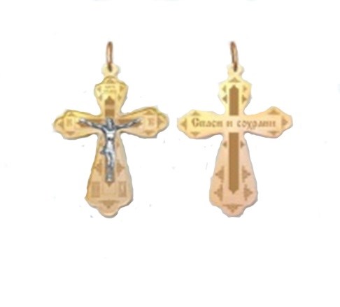 Это освященное православное изделие - Крест из золота 585 пробы. Имеет алмазную и лазерную огранку. Если хотите конкретную обработку, то уточните возможность ее выбора у менеджера при заказе. Весит, от 2,08 гр.