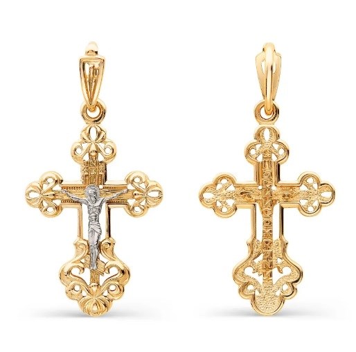 Это освященное православное изделие - Крест из золота 585 пробы. Имеет алмазную и лазерную огранку. Если хотите конкретную обработку, то уточните возможность ее выбора у менеджера при заказе. Весит, от 1,67 гр.