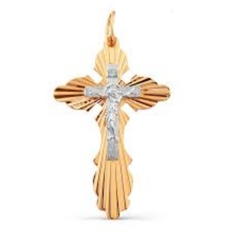 Это освященное православное изделие - Крест из золота 585 пробы. Имеет алмазную и лазерную огранку. Если хотите конкретную обработку, то уточните возможность ее выбора у менеджера при заказе. Весит, от 2,5 гр.