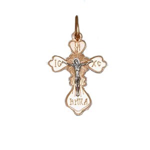 Это освященное православное изделие - Крест из золота 585 пробы. Имеет алмазную и лазерную огранку. Если хотите конкретную обработку, то уточните возможность ее выбора у менеджера при заказе. Весит, от 1 гр.