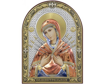 Семистрельная Икона Божией Матери является православным освященным изделием, выполненным из дерева и биметалла . Лик неоднократно покрыт лаком, что гарантирует долговечность изображения, свежесть и чистоту красок. Образ может быть нанесен на гладкую поверхность или в ковчеге. Икона представлена в различных размерах. Вы можете выбрать удобный для Вас. Поставляется кожанном футляре, упакованным в коробку, что гарантирует максимальную сохранность при хранении и транспортировке.