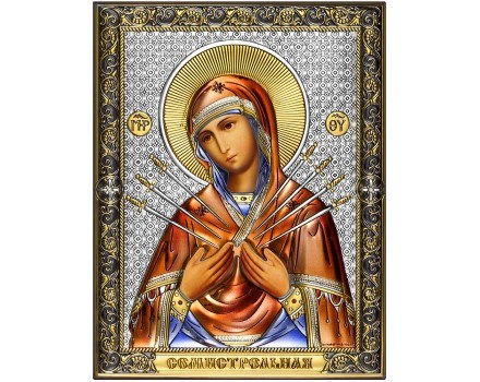 Семистрельная Икона Божией Матери является православным освященным изделием, выполненным из дерева и биметалла . Лик неоднократно покрыт лаком, что гарантирует долговечность изображения, свежесть и чистоту красок. Образ может быть нанесен на гладкую поверхность или в ковчеге. Икона представлена в различных размерах. Вы можете выбрать удобный для Вас. Поставляется кожанном футляре, упакованным в коробку, что гарантирует максимальную сохранность при хранении и транспортировке.