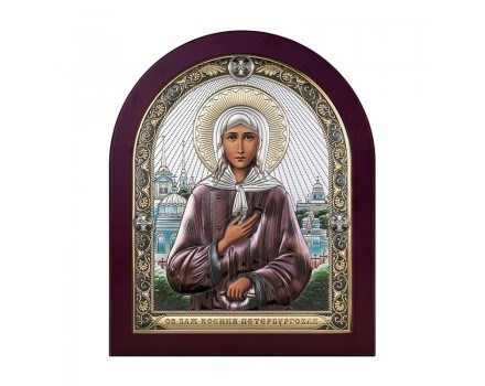 Икона Святая Ксения Петербургская является православным освященным изделием, выполненным из дерева и биметалла . Лик неоднократно покрыт лаком, что гарантирует долговечность изображения, свежесть и чистоту красок. Образ может быть нанесен на гладкую поверхность или в ковчеге. Икона представлена в различных размерах. Вы можете выбрать удобный для Вас. Поставляется кожанном футляре, упакованным в коробку, что гарантирует максимальную сохранность при хранении и транспортировке.