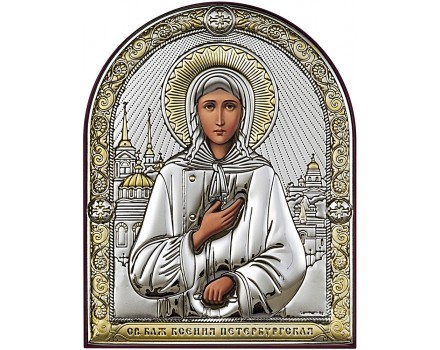 Икона Святая Ксения Петербургская является православным освященным изделием, выполненным из биметалла . Лик неоднократно покрыт лаком, что гарантирует долговечность изображения, свежесть и чистоту красок. Образ может быть нанесен на гладкую поверхность или в ковчеге. Икона представлена в различных размерах. Вы можете выбрать удобный для Вас. Поставляется кожанном футляре, упакованным в коробку, что гарантирует максимальную сохранность при хранении и транспортировке.