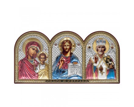 Триптих Спаси и Сохрани является православным освященным изделием, выполненным из дерева и биметалла . Лик неоднократно покрыт лаком, что гарантирует долговечность изображения, свежесть и чистоту красок. Образ может быть нанесен на гладкую поверхность или в ковчеге. Икона представлена в различных размерах. Вы можете выбрать удобный для Вас. Поставляется кожанном футляре, упакованным в коробку, что гарантирует максимальную сохранность при хранении и транспортировке.