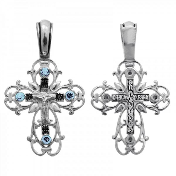 Это Освященное Православное изделие - Крест, из Серебро Ag 925. Изделие входит в коллекцию: 'Санкт-Петербург'. Произведено по типу: 'Литье'. Украшена ювелирными камнями. Данные по их ассортименту можно уточнить у менеджера. Изделие имеет высоту 3,3 см. Изделие имеет ширину 1,9 см. Весит, от 2.90 гр.