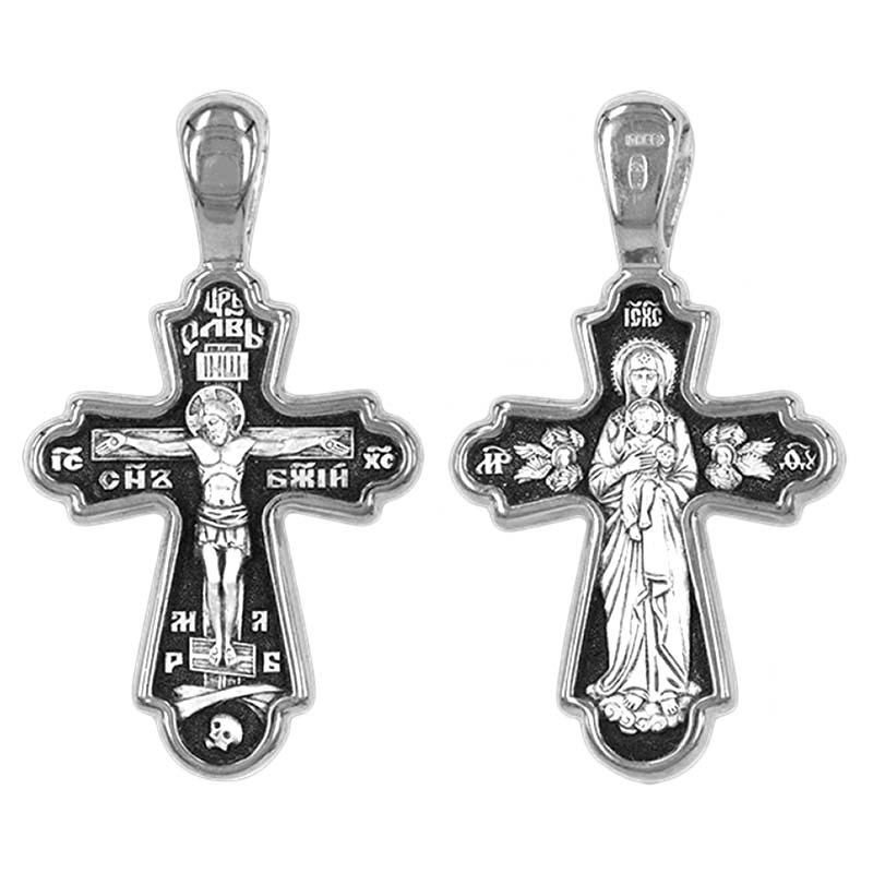 Крест серебряный Ag 925, коллекция Санкт-Петербург, лик Валаамская БМ, Чернение (оксидирование), 5,63 гр., арт. КРС02241519