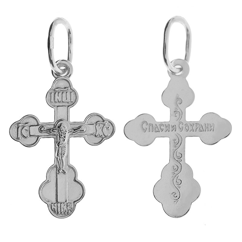 Это Освященное Православное изделие - Крест, из Серебро Ag 925. Изделие входит в коллекцию: 'Иваново'. Произведено по типу: 'Штамп'. Украшена ювелирными камнями. Данные по их ассортименту можно уточнить у менеджера. Весит, от 0.67 гр.