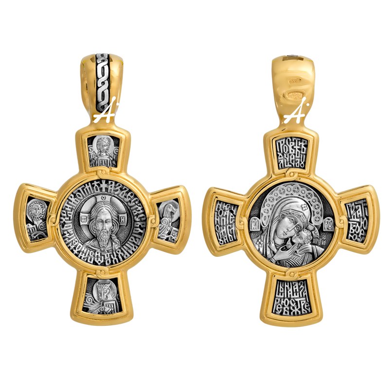 Крест позолоченный Ag 925/Au 585, коллекция Акимов, лик Спас на престоле, Позолота желтая 999*, Чернение (оксидирование), 6,91 гр., арт. КРС02241574