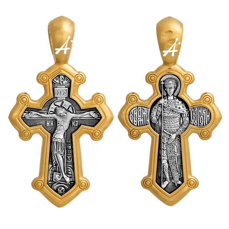 Крест позолоченный Ag 925/Au 585, коллекция Акимов, лик Дмитрий Солунский Св., Позолота желтая 999*, Чернение (оксидирование), 7,24 гр., арт. КРС02241575