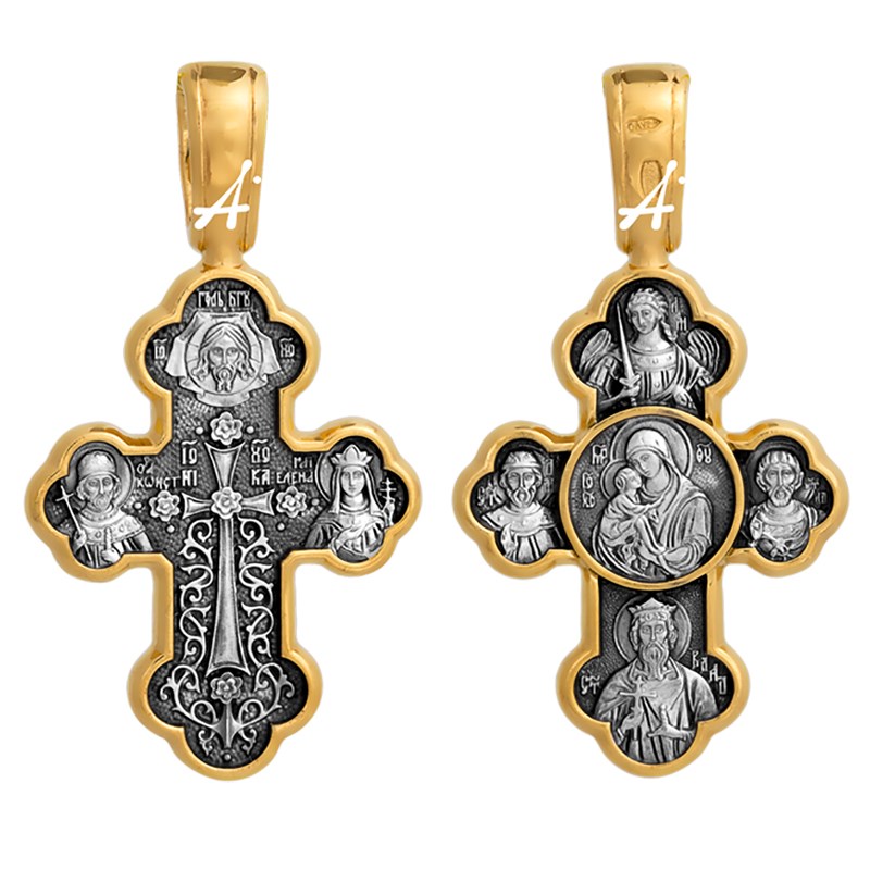 Крест позолоченный Ag 925/Au 585, коллекция Акимов, лик Донская БМ, Позолота желтая 999*, Чернение (оксидирование), 5,72 гр., арт. КРС02241596