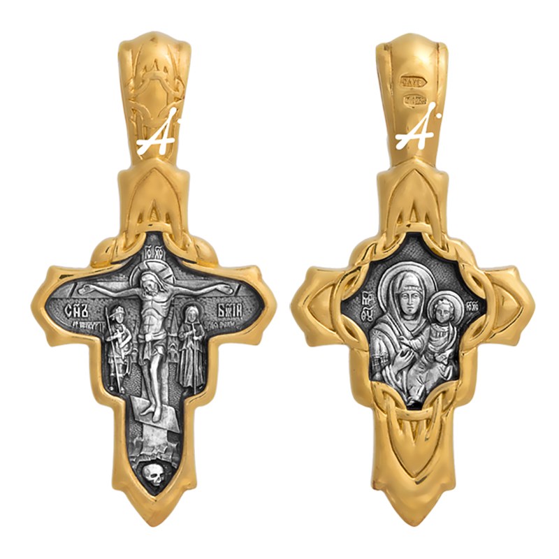 Крест позолоченный Ag 925/Au 585, коллекция Акимов, лик Смоленская БМ, Позолота желтая 999*, Чернение (оксидирование), 7,26 гр., арт. КРС02241598