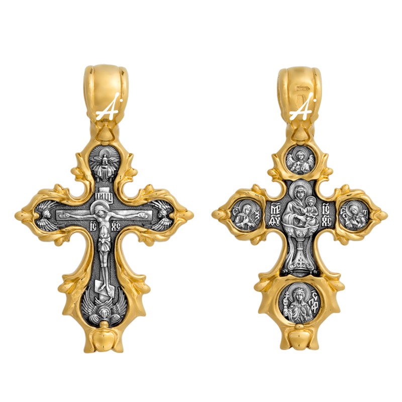 Крест позолоченный Ag 925/Au 585, коллекция Акимов, лик Живоносный источник, Позолота желтая 999*, Чернение (оксидирование), 5,75 гр., арт. КРС02241626