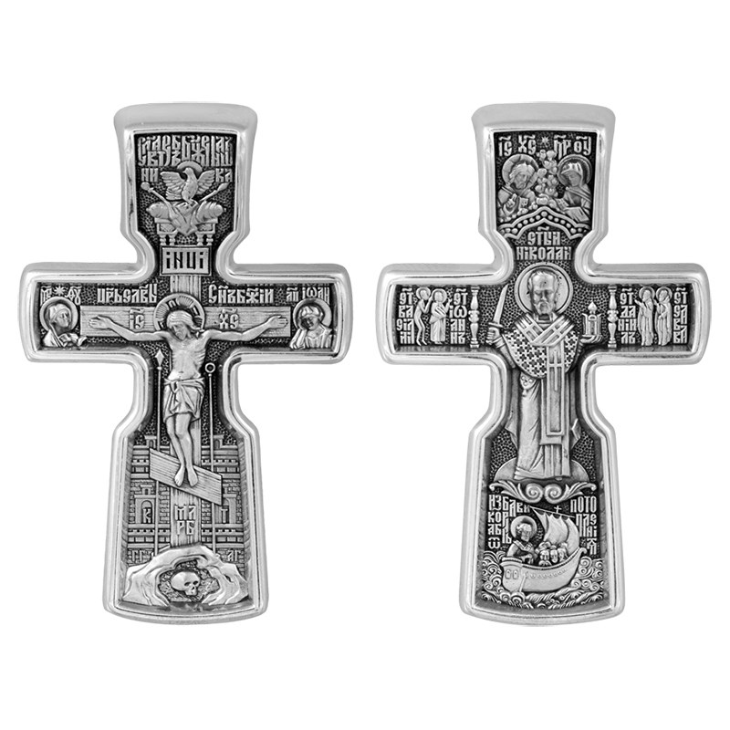 Крест серебряный Ag 925, коллекция Акимов, лик Николай Чудотворец, Чернение (оксидирование), 13,33 гр., арт. КРС02241697