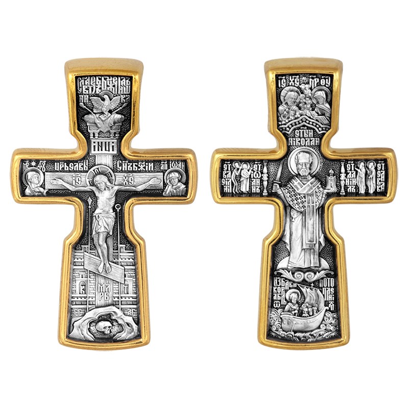 Крест позолоченный Ag 925/Au 585, коллекция Акимов, лик Николай Чудотворец, Позолота желтая 999*, Чернение (оксидирование), 13,64 гр., арт. КРС02241698