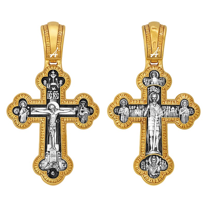 Крест позолоченный Ag 925/Au 585, коллекция Акимов, с молитвой Да воскреснет Бог..., лик Александр Невский, Позолота желтая 999*, Чернение (оксидирование), 11,47 гр., арт. КРС02241715