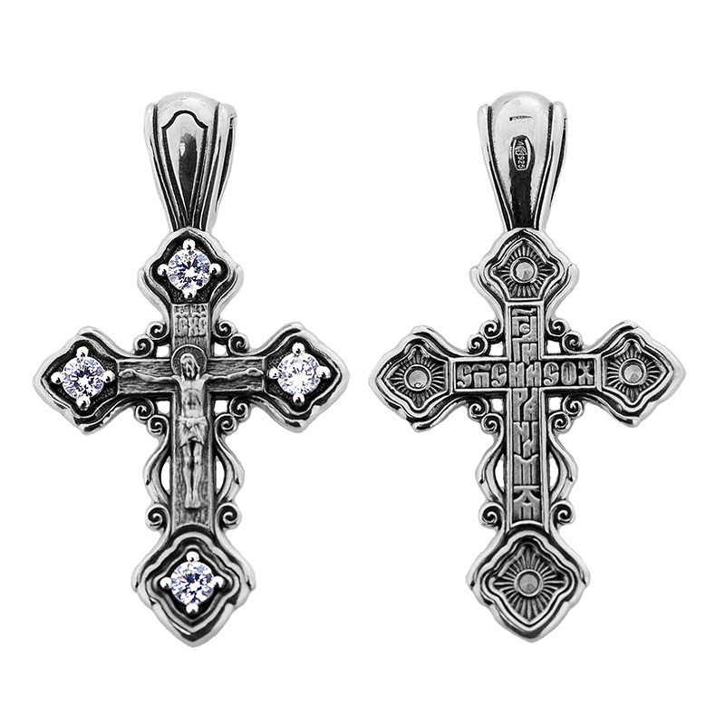 Крест серебряный Ag 925, коллекция Акимов, вставка Фианит, с молитвой Господи, спаси и сохрани, Чернение (оксидирование), 3,04 гр., арт. КРС02241719