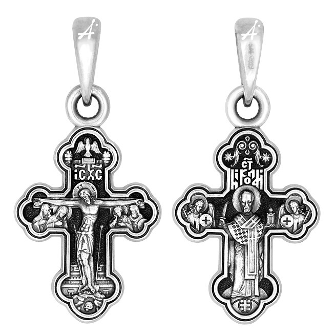Это Освященное Православное изделие - Крест, из Серебро Ag 925. Изделие входит в коллекцию: 'Акимов'. Произведено по типу: 'Литье'. Напоминает душе о святости мученников, таких как, Николай Чудотворец. Весит, от 1.55 гр.