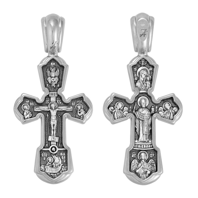 Крест серебряный Ag 925, коллекция Акимов, лик Казанская БМ, Николай Чудотворец, Чернение (оксидирование), 17,49 гр., арт. КРС02241726