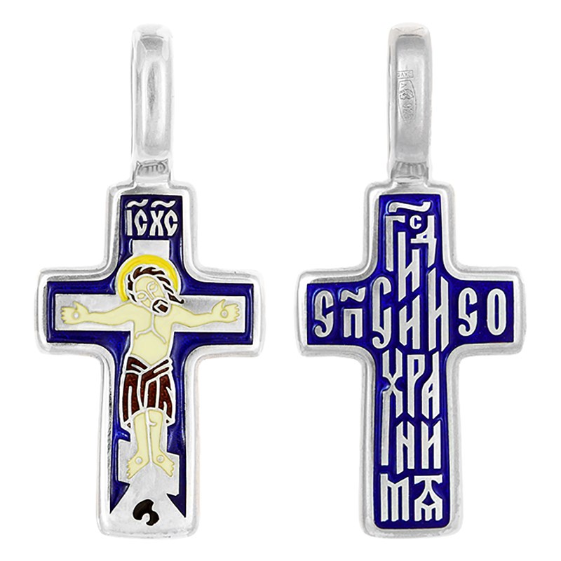 Крест серебряный Ag 925, коллекция Акимов, с молитвой Господи, спаси и сохрани, c эмалью, 2,69 гр., арт. КРС02241744