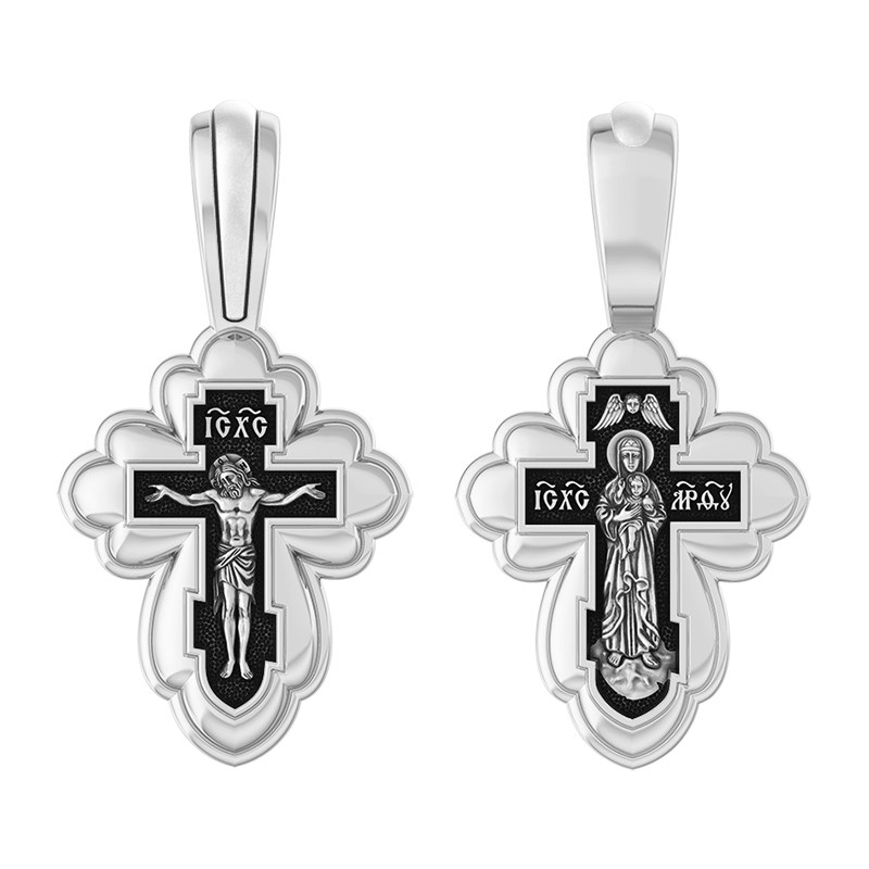 Крест серебряный Ag 925, коллекция Санкт-Петербург, лик Валаамская БМ, Чернение (оксидирование), 3,09 гр., арт. КРС02241385