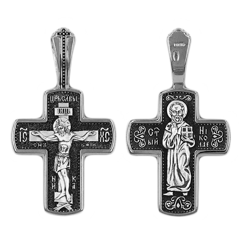 Крест серебряный Ag 925, коллекция Санкт-Петербург, лик Николай Чудотворец, Чернение (оксидирование), 6,61 гр., арт. КРС02241386