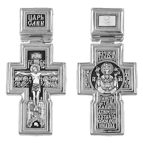 Крест серебряный Ag 925, коллекция Санкт-Петербург, лик Иоанн Богослов Св., Неупиваемая Чаша БМ, Чернение (оксидирование), 14,43 гр., арт. КРС02241402