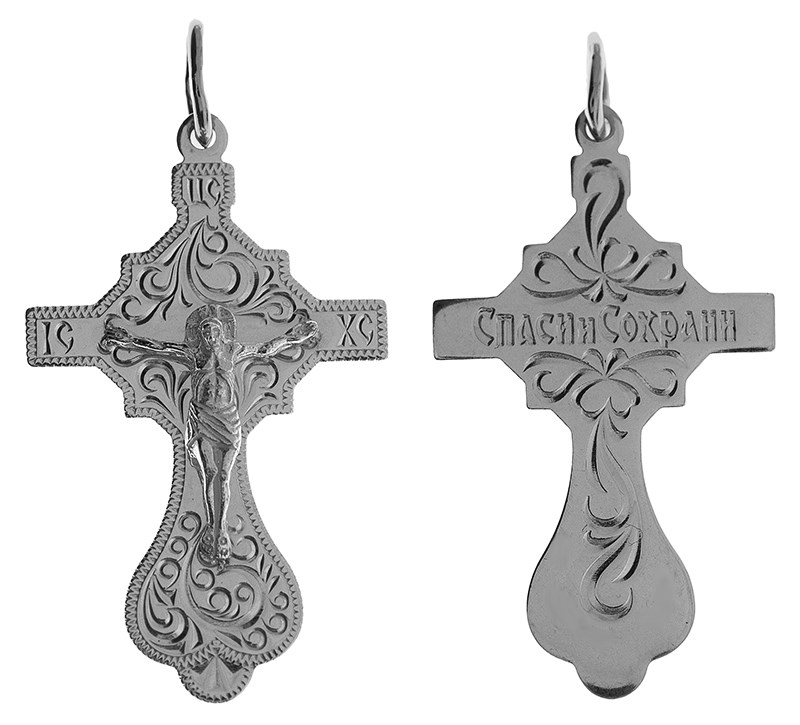 Это Освященное Православное изделие - Крест, из Серебро Ag 925. Изделие входит в коллекцию: 'Москва златоглавая-2'. Произведено по типу: 'Гравировка'. Украшена ювелирными камнями. Данные по их ассортименту можно уточнить у менеджера. Изделие имеет высоту 3,2 см. Изделие имеет ширину 2,1 см. Освящен молитвой: ' Спаси и сохрани'. Весит, от 2.70 гр.