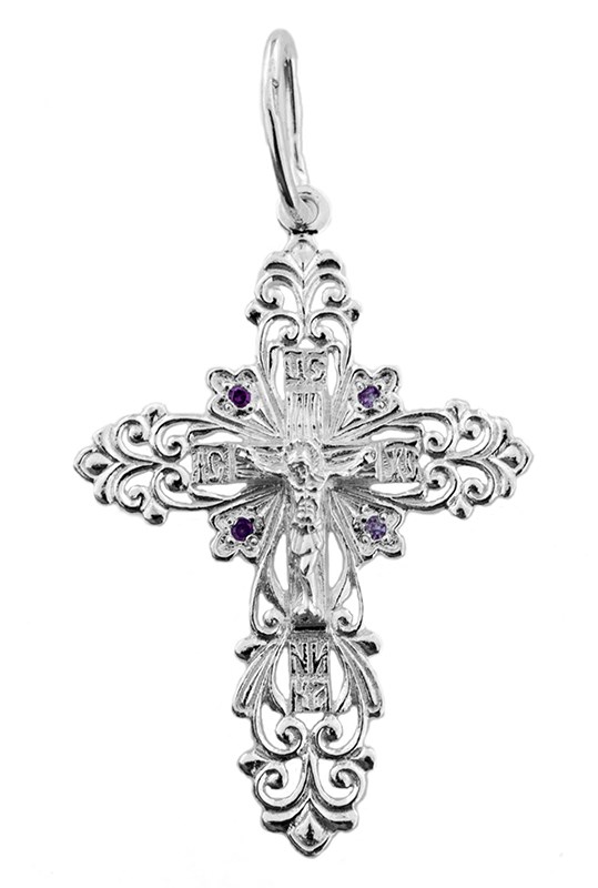 Это Освященное Православное изделие - Крест, из Серебро Ag 925. Изделие входит в коллекцию: 'Иваново'. Произведено по типу: 'Литье'. Украшена ювелирными камнями. Данные по их ассортименту можно уточнить у менеджера. Изделие имеет высоту 3,8 см. Изделие имеет ширину 2,2 см. Весит, от 1.86 гр.