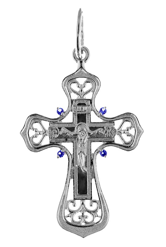 Это Освященное Православное изделие - Крест, из Серебро Ag 925. Изделие входит в коллекцию: 'Иваново'. Произведено по типу: 'Литье'. Украшена ювелирными камнями. Данные по их ассортименту можно уточнить у менеджера. Изделие имеет высоту 3,9 см. Изделие имеет ширину 2,2 см. Весит, от 2.63 гр.
