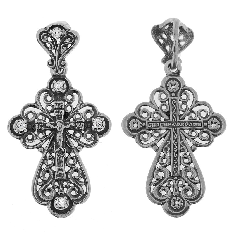 Крест серебряный Ag 925, коллекция Спаси и сохрани, вставка Фианит, Чернение (оксидирование), 3,72 гр., арт. КРС02241901