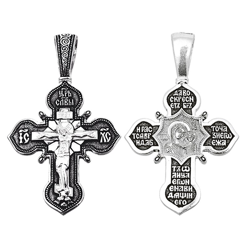 Крест серебряный Ag 925, коллекция Санкт-Петербург, лик Казанская БМ, Чернение (оксидирование), 11,2 гр., арт. КРС0224552