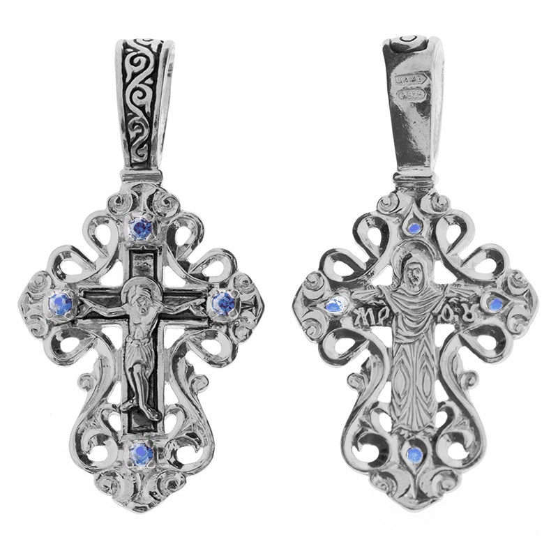 Крест серебряный Ag 925, коллекция Санкт-Петербург, вставка Фианит, лик Покров Пресвятой Богородицы, Чернение (оксидирование), 2,02 гр., арт. КРС0224564