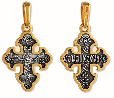 Крест позолоченный Ag 925/Au 585, коллекция Липецк, Позолота желтая 999*, 4,56 гр., арт. КРС0224588