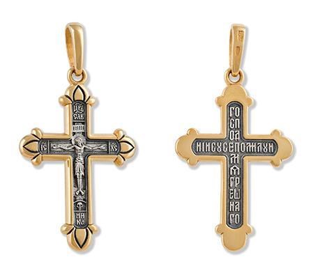 Крест позолоченный Ag 925/Au 585, коллекция Липецк, Позолота желтая 999*, 5,87 гр., арт. КРС0224601