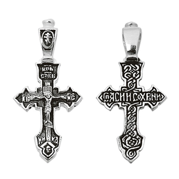 Крест серебряный Ag 925, коллекция Санкт-Петербург, с молитвой Спаси и сохрани, Чернение (оксидирование), 1,09 гр., арт. КРС0224637