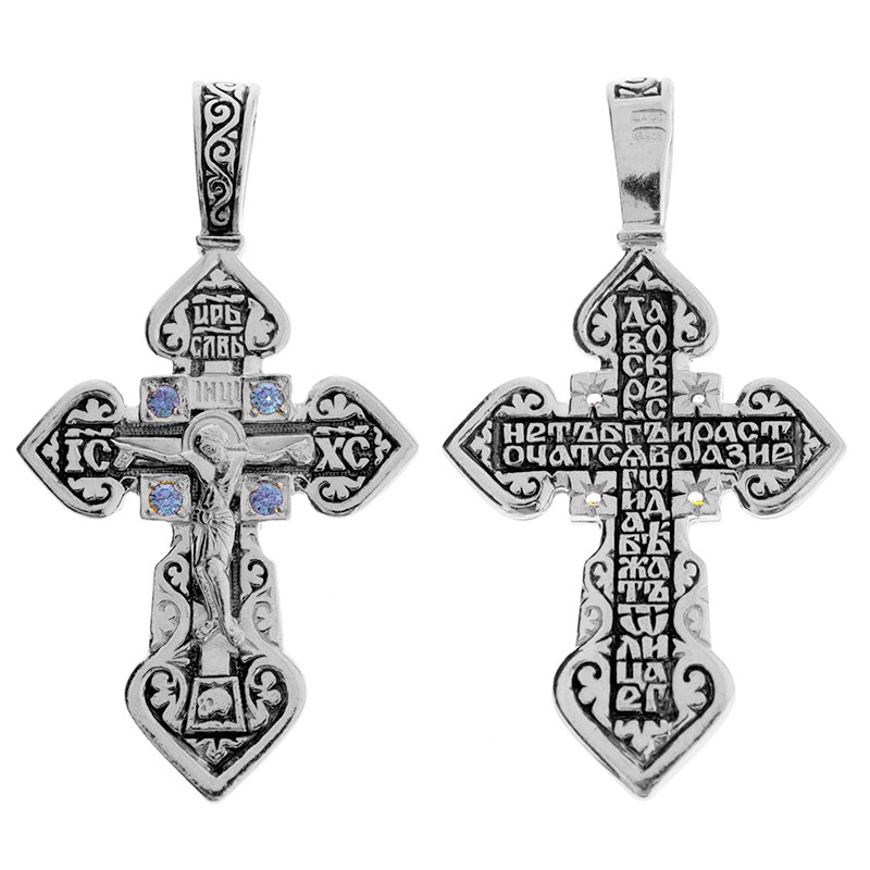 Крест серебряный Ag 925, коллекция Санкт-Петербург, вставка Фианит, с молитвой Да воскреснет Бог..., Чернение (оксидирование), 3,79 гр., арт. КРС0224668