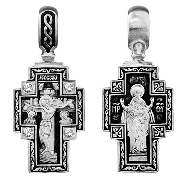 Крест серебряный Ag 925, коллекция Санкт-Петербург, вставка Фианит, лик Покров Пресвятой Богородицы, Чернение (оксидирование), 5,97 гр., арт. КРС0224764