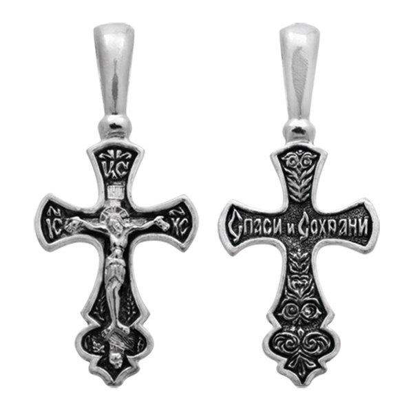 Крест серебряный Ag 925, коллекция Санкт-Петербург, с молитвой Спаси и сохрани, Чернение (оксидирование), 1,95 гр., арт. КРС0224787