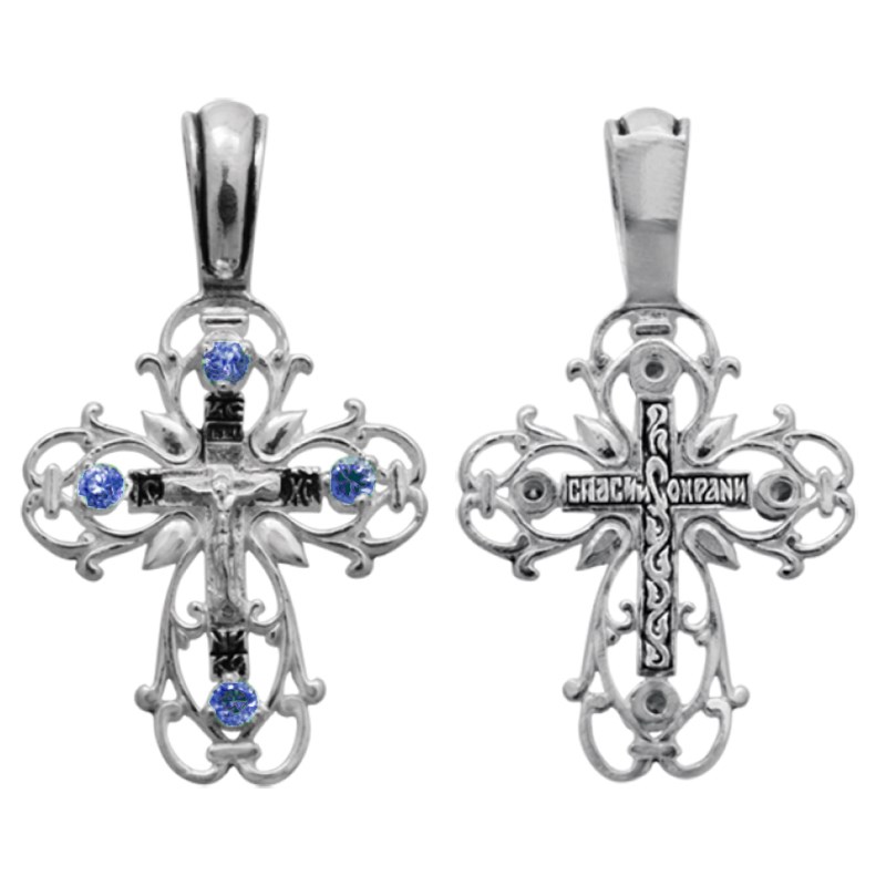 Это Освященное Православное изделие - Крест, из Серебро Ag 925. Изделие входит в коллекцию: 'Санкт-Петербург'. Украшена ювелирными камнями. Данные по их ассортименту можно уточнить у менеджера. Изделие имеет высоту 3,3 см. Изделие имеет ширину 2 см. Освящен молитвой: ' Спаси и сохрани'. Весит, от 2.90 гр.