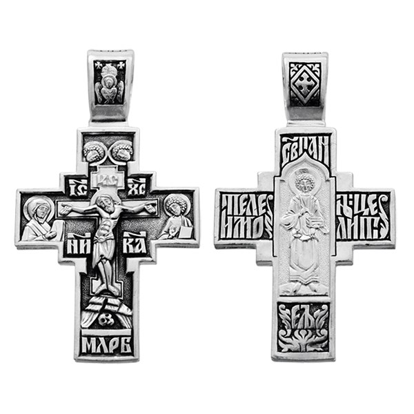 Это Освященное Православное изделие - Крест, из Серебро Ag 925. Изделие входит в коллекцию: 'Санкт-Петербург'. Украшена ювелирными камнями. Данные по их ассортименту можно уточнить у менеджера. Напоминает душе о святости мученников, таких как, Пантелеимон Св.. Изделие имеет высоту 4,8 см. Изделие имеет ширину 2,8 см. Весит, от 10.30 гр.