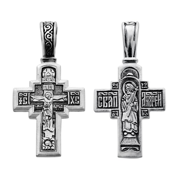 Крест серебряный Ag 925, коллекция Санкт-Петербург, лик Андрей Первозванный Св., Чернение (оксидирование), 2,52 гр., арт. КРС02241472