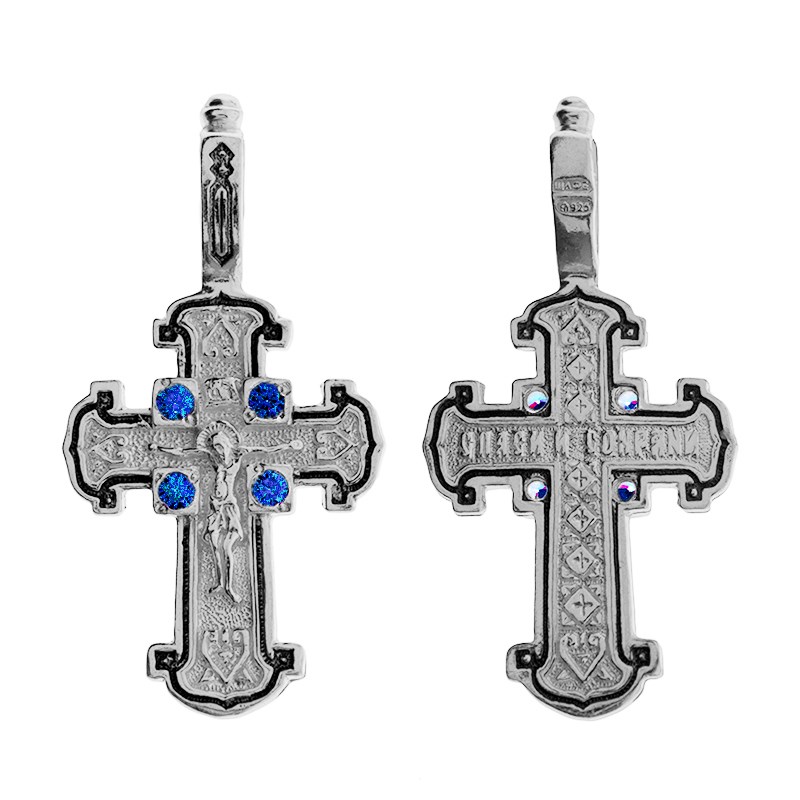 Это Освященное Православное изделие - Крест, из Серебро Ag 925. Изделие входит в коллекцию: 'Санкт-Петербург'. Украшена ювелирными камнями. Данные по их ассортименту можно уточнить у менеджера. Изделие имеет высоту 3 см. Изделие имеет ширину 1,6 см. Освящен молитвой: ' Спаси и сохрани'. Весит, от 1.97 гр.
