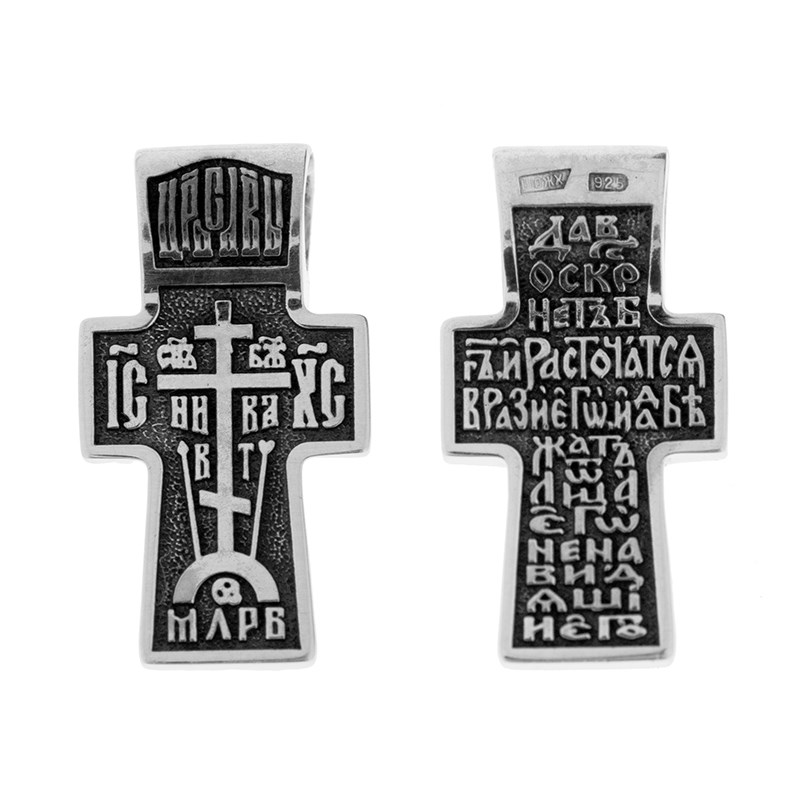 Крест серебряный Ag 925, коллекция Липецк, с молитвой Да воскреснет Бог..., Чернение (оксидирование), 2,72 гр., арт. КРС02242030