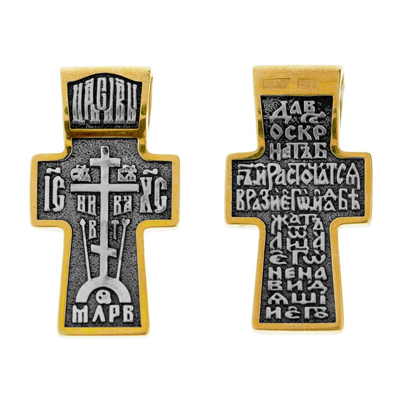 Крест позолоченный Ag 925/Au 585, коллекция Липецк, с молитвой Да воскреснет Бог..., Позолота желтая 999*, 2,75 гр., арт. КРС02242031