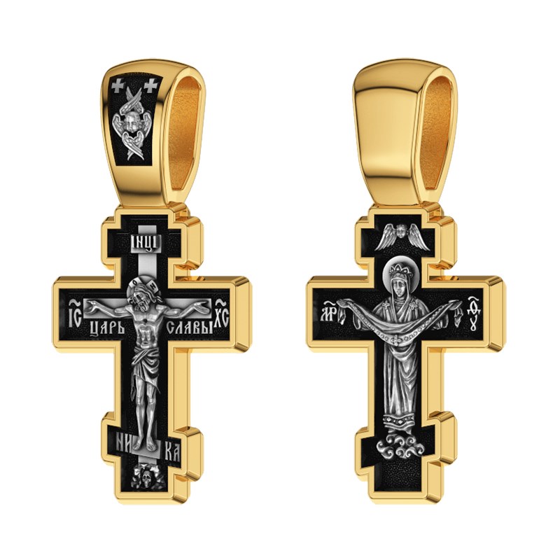 Крест позолоченный Ag 925/Au 585, коллекция Санкт-Петербург, лик Покров Пресвятой Богородицы, Позолота желтая 999*, Чернение (оксидирование), 3,54 гр., арт. КРС0224934