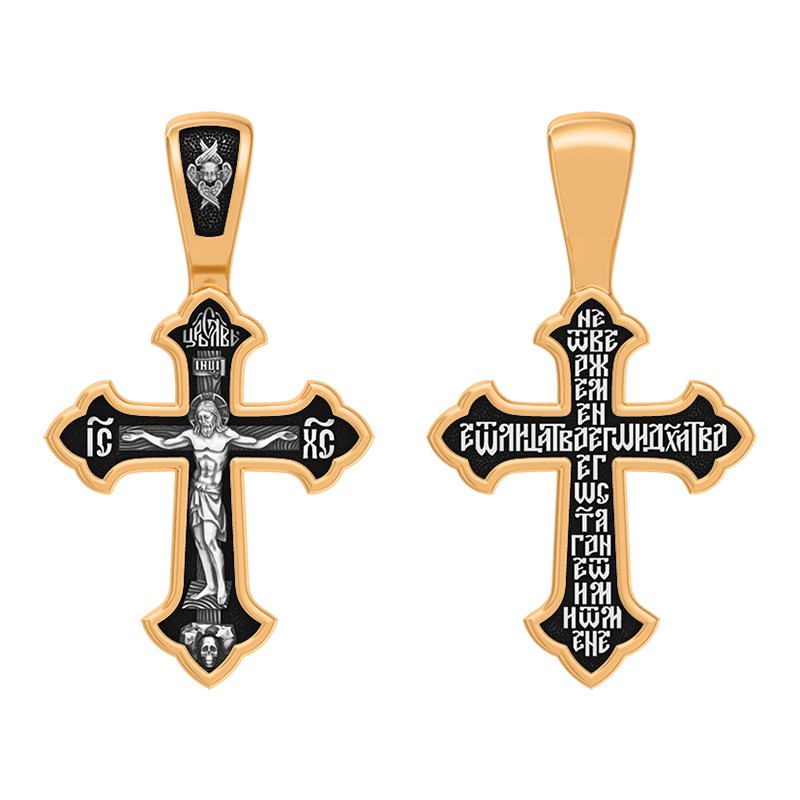 Крест позолоченный Ag 925/Au 585, коллекция Санкт-Петербург, с молитвой Не отвержи мене от лица Твоего и Духа Твоего Святаго, Позолота желтая 999*, 2,44 гр., арт. КРС0224943
