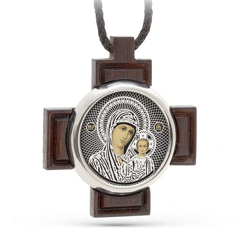 Это Освященное Православное изделие - Крест, из Серебро Ag 925. Изделие входит в коллекцию: 'Обсидиан'. Напоминает душе о святости мученников, таких как, Казанская БМ. Изделие имеет высоту 5,5 см. Изделие имеет ширину 5,5 см. Весит, от 1.00 гр.